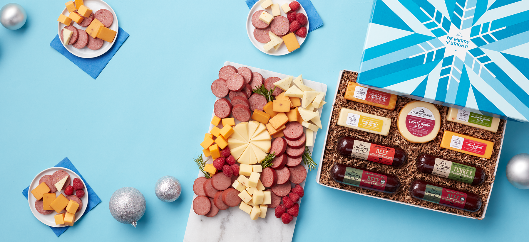 For over 70 years, Hickory Farms has been a trusted name in gourmet holiday gifts, known for our award-winning summer sausage, cheeses, and expertly curated gift baskets. Rooted in tradition and quality, we help families and friends create lasting memories through thoughtful gifts. Whether you're sending a Christmas package, looking for corporate holiday gifts, or building a festive charcuterie board, Hickory Farms makes your holiday season easy, meaningful, and memorable. With convenient nationwide delivery and beautifully packaged options, our gifts bring joy to every celebration, no wrapping required!