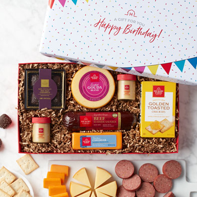 Some of us like to celebrate our birthday a little more under the radar, with a low-key night in. If you’re shopping for someone like this, they’d love something they can enjoy during their birthday movie night, game night, or chill session. Give them a gift that will let them create a delicious meat and cheese spread, Birthday Cheese Favorites & Sausage Gift Box. Or, if your low-key friend likes their snacks with a glass of wine, they’ll love unwrapping our Birthday Charcuterie & Sweets Gift Box with Wine.