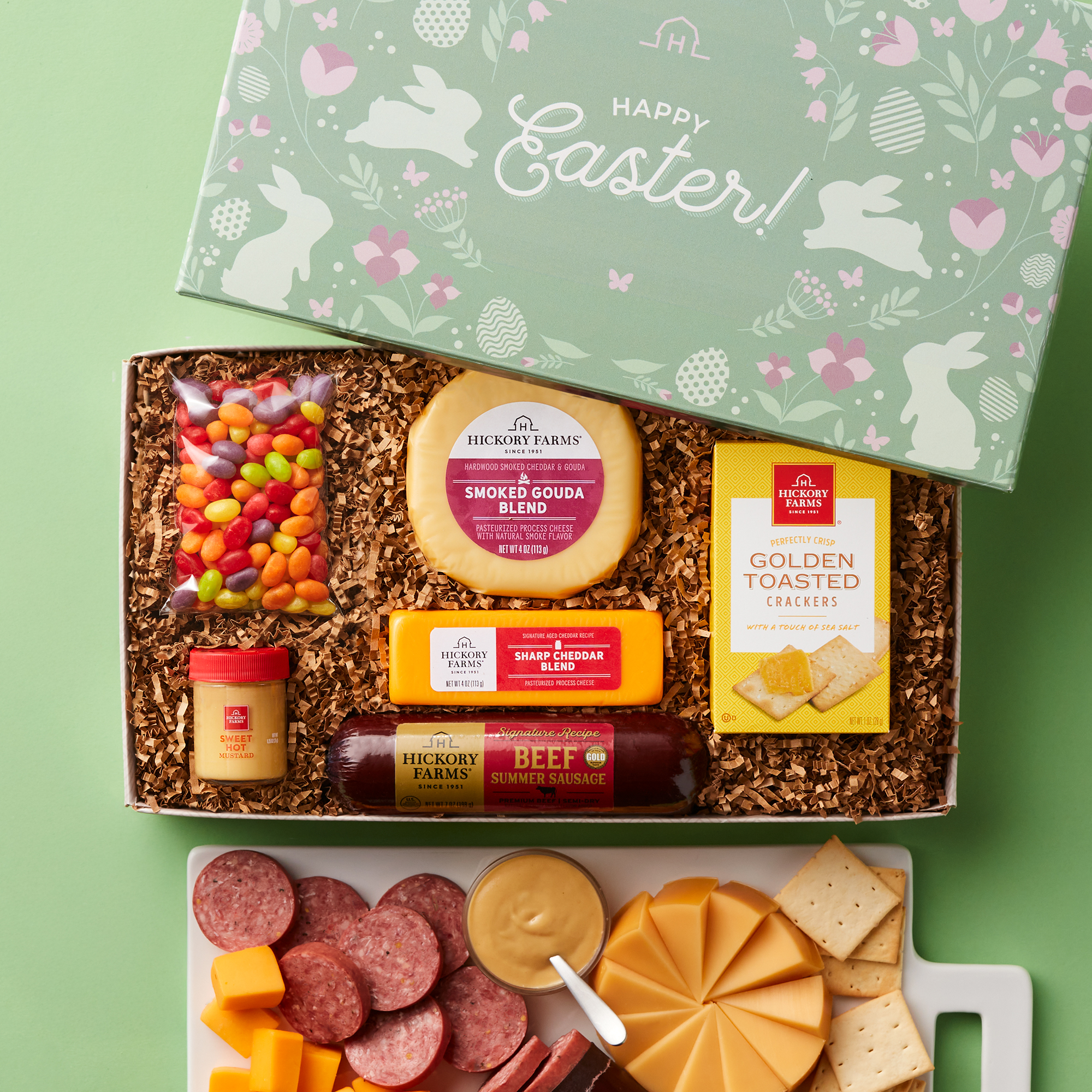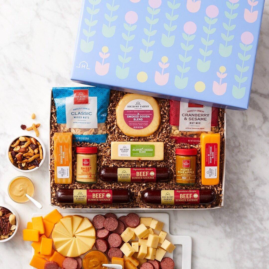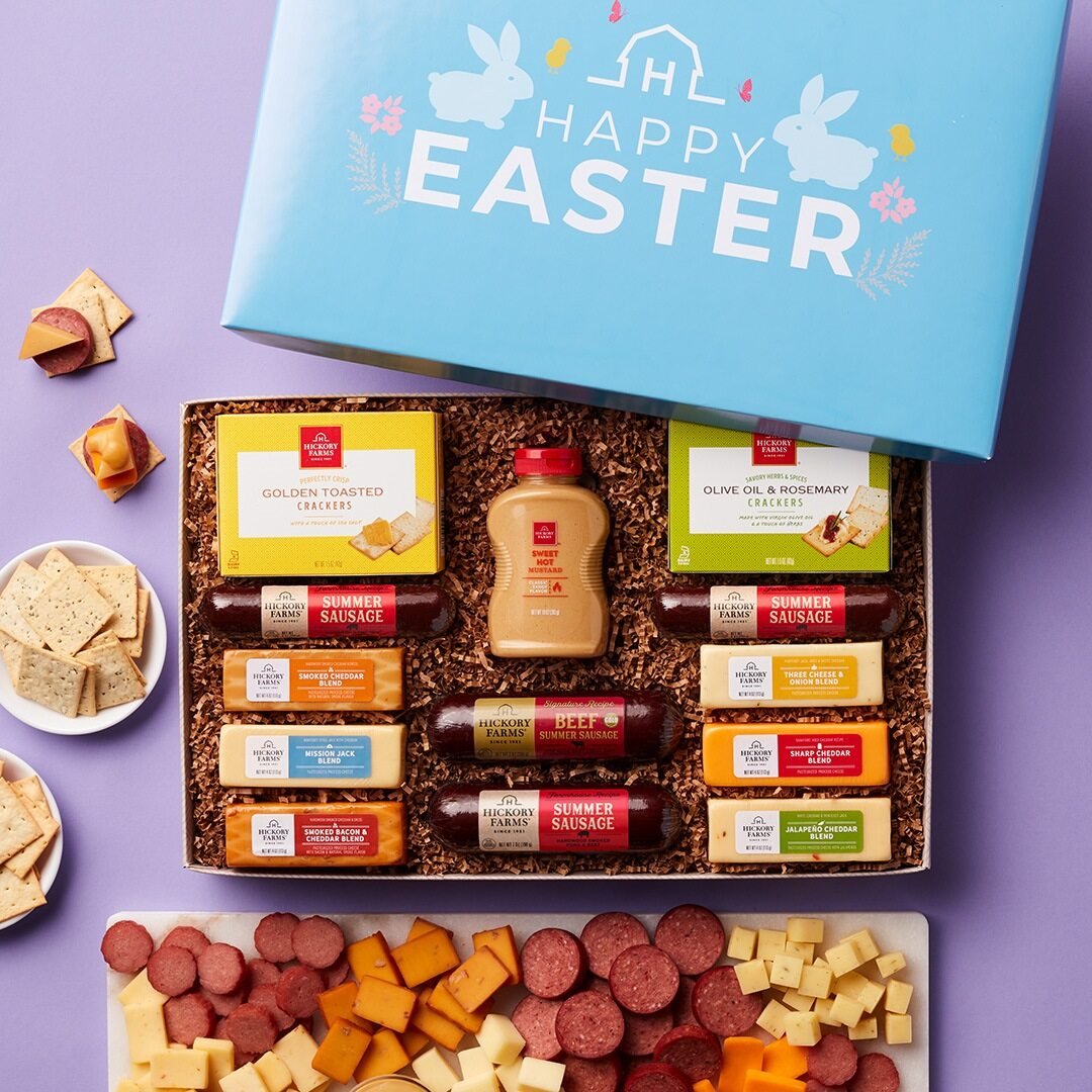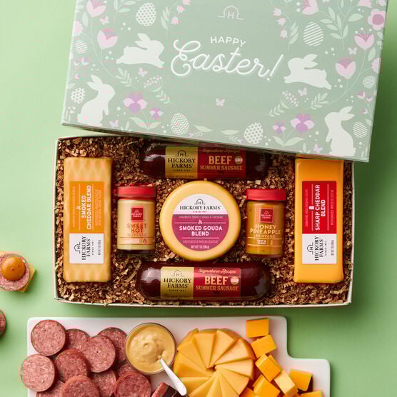 Whether you’re gifting to your favorite party host or looking for appetizer ideas for your own Easter spread, this festive box makes snacking easy. Inside you’ll find three kinds of savory summer sausage, five creamy cheeses, our most-loved mustard, and two kinds of crispy crackers. With so many ways to mix and match, it’s a simple way to create a crowd-pleasing appetizer for every bunny at the table.