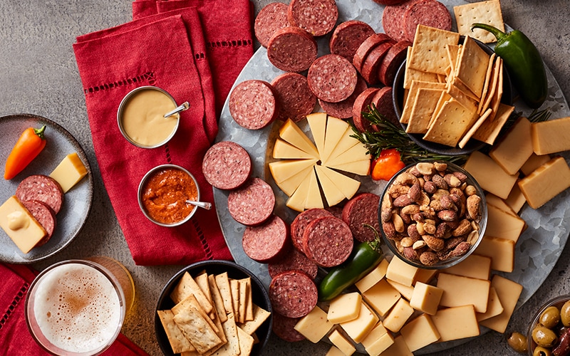 Go big for your beau with an overflowing signature-designed box of satisfying treats. He’ll tuck into Beef, Spicy Beef, and Sweet & Smoky Turkey Summer Sausages that pair deliciously with Harvest Cheddar Blend, Farmhouse Cheddar, Jalapeño Cheddar Blend, Three Cheese & Onion Blend, and Smooth & Sharp Cheddar Blend for a wide variety of flavor. And because it’s gluten-free, this gift makes a great pick that almost anyone can enjoy!