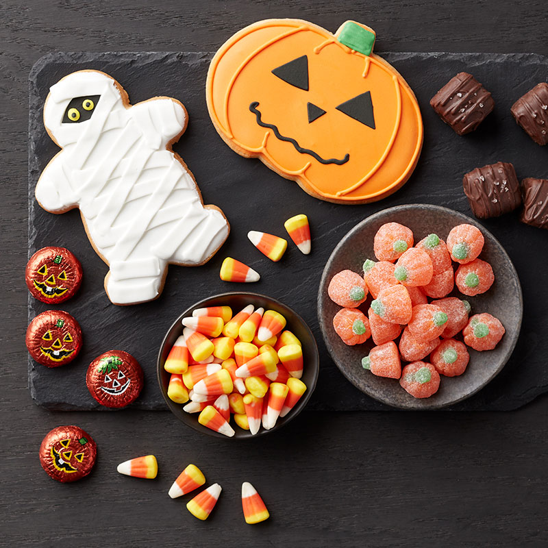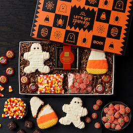 A movie marathon featuring family favorites like Hotel Transylvania, Casper, and Halloweentown calls for a spread of both savory shareables and sweet treats. The Spooky Sweets Halloween Gift Box and Happy Halloween Gift Basket both feature a sampling of charcuterie staples and sweets to please kids and adults. You can never go wrong with extra chocolate—it is Halloween after all—add our Dark Chocolate Peanut Butter Meltaways to your movie night, too!