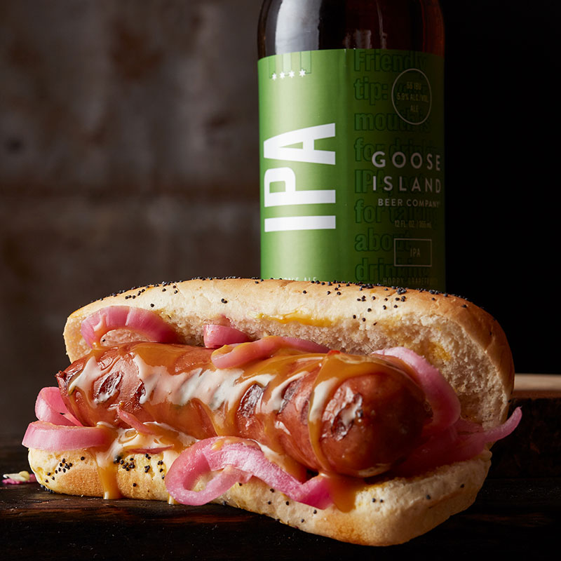 Jesse’s pairing notes: Goose IPA is a bold beer with its bold hops and strong malt finish, so it needs to be paired alongside a dish with strong flavors to keep up. Ready for the challenge is the Hero brat with its pickled red onions and Honey Pineapple Mustard, flavors that can perfectly keep up with the boldness of Goose IPA.