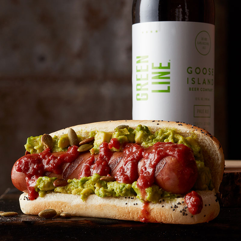 Jesse’s pairing notes: Green Line is the go-to pale ale that wants to make friends with whatever you’re eating. This beer, perfectly balanced with its subtle malts and earthy hops, is ready to sit back and let this tasty brat topped with Cranberry Mustard and avocado take the wheel!