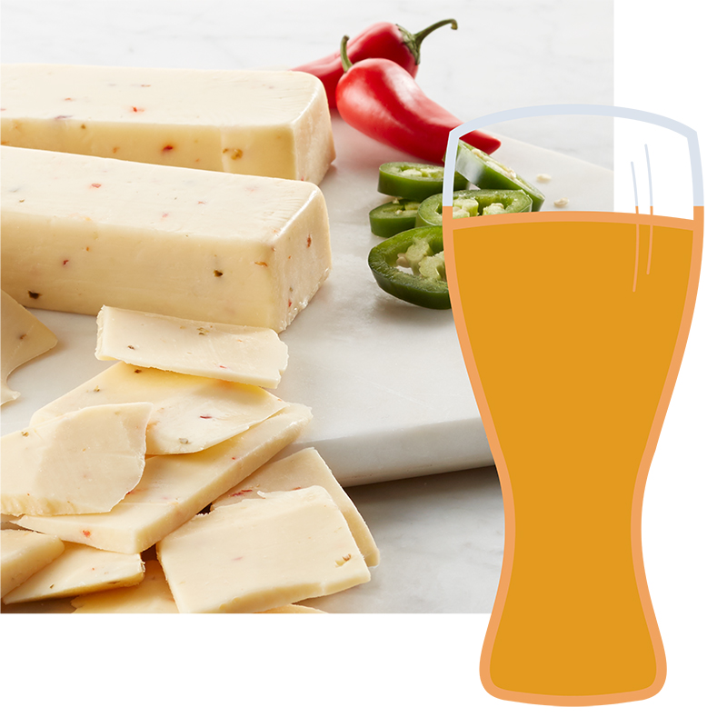 Subtle lighter flavors pair well with a lighter beer. Pilsner is light enough, so it won’t overpower a lightly flavored cheese, and the malty sweetness balances the slight acidity this cheese has. Try: Prima Pils by Victory Brewing Company, Tiny Bomb by Wiseacre Brewing Co., Mama’s Little Yella Pils by Oskar Blues Brewery, Summerfest by Sierra Nevada Brewing Co.